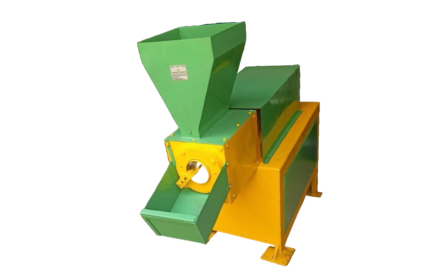 The large tablets formed during extrusion are directed into a crushing chamber, where they are broken into uniform granules suitable for agricultural use.